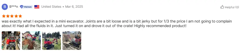 हाम्रो मिनी एक्काभेटरमा समायोज्य सिटहरू, वैकल्पिक गियर सिफ्टहरू, रेडियो, रिभर्स क्यामेरा र अन्य चयन योग्य कार्यहरू छन्, जसले तपाईंलाई मनपर्ने अनुकूलित उत्खनन गर्न अनुमति दिन्छ।